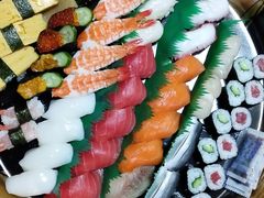 沼津を本拠に県東部に複数店展開している宅配/テイクアウトのお寿司屋さんです。鯵をはじめ地魚の質が良く、またマグロもスバラシイです。