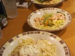安くて手軽で安心できて美味しい所のサイゼリヤでランチにしました。パスタとサラダをいただきました。ご馳走様でした。