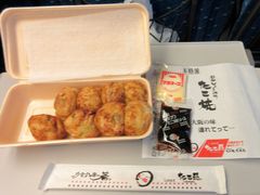 新大阪駅2階飲食&ショッピング街アルデ新大阪の一角にある割と小さめのお店です。大阪名物たこ焼きや明石焼きなど500〜1000円で揃っています。テイクアウトもできますし、ビールもありました。