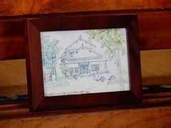 あっさりしたものが食べたかったので、一万十七石へ行きました。前回は車を置く場所もないほど混んでいましたが、今日は空いていました。900円のおかめそばをたのみましたが、生めんは700円で売っているので、具材とスープで200円ということでとてもお得感がありました。今日は客席の一角にそば粉が積み上げられていました。座敷の上り口に、お店を描いた絵が飾ってありました。