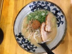 某グルメサイトで見て気になっていたのですがさすがにわざわざ来れるはずもなく今回の島根の旅が決まったと同時に松江散策時の昼食として予定にねじ込みました。お城より北西方向に5分程度の場所にあり迷うこともなく12時少し前に到着、待つこともなく入店できました。行列を覚悟していたのでいささか期待しすぎだったかなと思いながら待つ間に続々とお客さんが来店、いやいや運のいい来店タイミングに感謝でした。あごだし白湯らぁめんとあごだし白湯らぁめんマー油入を注文し二人で食べ比べです。あごだしは魚介系を強く主張するでなく食べやすい仕上がりです。