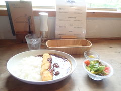 カレーが美味しかった。ナンもとても美味しい。荒川版画美術館もあります。敷地内に小川が流れており、ほとりには白樺林、北海道らしい雰囲気たっぷり。