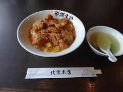 「北京飯」は、フワッとした玉子とじをかけたご飯の上に豚の空揚げが乗った、「北京本店」発祥の料理で、意外と和風の味がします。テレビなどで放映されているので、昼時はかなり混み合います。開店と同時に行ったのですがすでに満席で少し待ちました。肉6枚入りのデラックス北京飯を注文し初めての味を噛みしめました。普通の中華料理もありますが、圧倒的に北京飯の注文が多いみたいです。