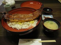 「大名」らしく、大きな器からはみ出す鰻に圧倒されます。