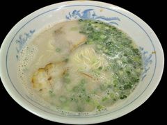 細麺でとんこつで美味しいです。カウンター席しかありませんが昼間は大体満員です。ここの無料で食べれる大根のつけものが本当においしくオススメ