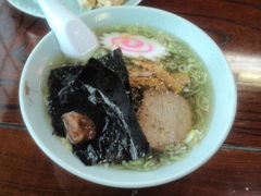 かずさラーメンは、最初そのままさっぱりなスープで食べて、途中から自家製の梅干しを崩して食べると梅塩ラーメンとしても美しく、鰹節ものっています。のり塩焼きそばは野菜もたっぷりで優しい味わい、ボリュームも結構あります。