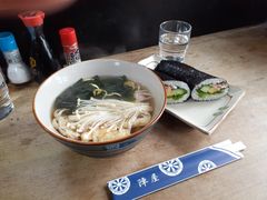 2月3日の節分の日には「恵方巻き+わかめうどん」のセットで、初めて恵方巻が登場しました。8月27日は、夏季限定の人気メニュー:盛岡冷麺とチャーハンのセットで、店主が常連客に事前通知していたこともあり、店内は大変に混み合いました。カレーライス(トンカツorエビフライ)の日もありますが、意外にも、恵方巻もチャーハンともどもレギュラーメニューではありません。