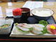 「刺身定食 時価」とメニューにあったので、今日の刺身を聞いたら、「まぐろ」「たい」「ぶり」の3つで1200円とのことで、注文しました。