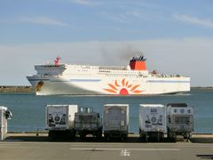 酒列磯前神社、ひたち海浜公園、宝くじの購入、大洗磯前神社と観光し昼食で寄りました、事前の予定通り海鮮丼、焼きがきとハマグリを頂きました、窓際で海を観ながらの食事中に期せづしてサンフラワー号の接岸をずーと観れました。