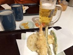 成田行きのバスまでに腹ごしらえをしようと、八重洲地下街でウロウロして探すと、安い天ぷら屋があり、天ぷら&生ビールセット¥580の安さに飛び込みました。正直あまり期待していなかったけど、サクサクの天ぷらは油もよく、普通に美味しいものでした。〆に小天丼とそばのセットで満腹となりました。