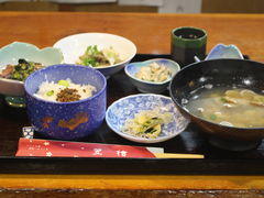 刺身定食1500円を注文しましたが、えび、タイ、サザエ、イワシなどのその日に取れた魚介類の刺身とさまざまな料理がどっさり出てきました。