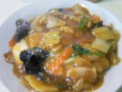 八戸駅前の人気店「達」にて昼食。13時過ぎ入店ですが、満員、若干お待ちのあとカウンター席へ。五目やきそば注文、10分弱で餡かけ焼きそば登場、熱々です。細麺にやや濃い味の餡かけがほどよく絡み美味しい。具材は白菜中心にタケノコ、肉、きくらげ、海老、ウズラ卵など定番、ボリュウムもあり満腹でした。名物大きな「唐揚げ」をお持ち帰りのお客も多い。