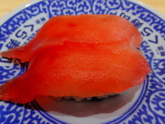 『熟成まぐろ』のにぎりが美味しかったので、4皿まとめて注文して食べました。