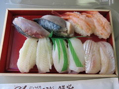 もっとも、朝早い時間には寿司は回転していないようで、板前さんが注文を受けて握ってくれます。列車まであまり時間がなかったので、持ち帰りできるか尋ねるとOKとのこと。早速、壁に貼ってある品書きから、舟べたやのど黒など都内の回転寿司では見ないようなネタを中心に5種類10カンを詰めてもらいました。魚の味の旨みとかシャリの具合などは一流店の鮨屋とは比べるべくもありませんが、これで1,500円ほど。駅弁代わりに列車内で美味しくいただきました。詳細情報をみる
