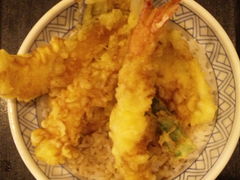 駐車場が共用で広くて停めやすいです。日曜日12時過ぎでしたが、穴場的に空いてました。席待ち無く即案内はウレシイですね。子連れでしたが座敷席で楽でした。天丼をいただきましたが揚げたてで具沢山、しかもご飯大盛り無料で安くて満足のお品でした。