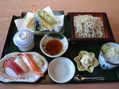 「のぎめし」飲食店として楽しみにしていたメニュー【大根博士の煉瓦窯そば】を注文。野木町産の大根を千切りにし、サッと茹でて手打ちそばと混ぜ合わせ、煉瓦窯に見立てて盛り付けたもの。地場産の野菜の天ぷらと共にいただくと格別に美味しい、お薦めの逸品です!店一押しの『しもつけ御膳』は、ハーフ麺をそばorうどんから選び、寿司3貫と天ぷら、小鉢やアイスクリームが付く豪華版!他にも「ミニ丼セットや曜日替わりA・Bランチ」などお得なセットメニューも定番人気になっています。