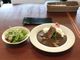 申し訳程度のサラダに煮込んだ柔らかい牛タンが添えられているカレーには、日の丸ならぬ旭日旗≠ェ飾ってあり、雰囲気を醸し出しています。