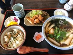11:00に到着しましたが、なんとオープンは11:30〜でした!お店の方が席を確保してくださったので、近くのセブンイレブンで時間を潰し、5分前に入店させていただきました。メニューには載っていない各種膳があったので、大好きなかきが入ったかき膳を注文しました。オーダー後、お茶と一緒に美味しい一口団子が運ばれてきました。外は寒かったので温かいお茶と一口団子がとても美味しくおかわりしたいぐらいでした。バイク仲間9人で行きましたが、オーダーに混乱もなくスムーズに対応いただきありがたかったです。注文したかき膳は、ぷりぷりの大きな牡蠣が3つも入っていて、お蕎麦とも良く合います、お蕎麦自体も大変美味しく味わいがありました。別皿の鶏肉もとても優しい味で、何となく田舎料理を味わったような感じでした。もみじおろしはとても辛くてビックリ、最後にそばつゆに混ぜていただきましたが、体がぽかぽかと温まりました。まぜご飯もとても美味しかったです。ランチはお蕎麦とまぜご飯のセットでとてもリーズナブルでしたが、それでも女性はお腹がいっぱいになったと言っていました。また、機会があったら行ってみたいお店です。