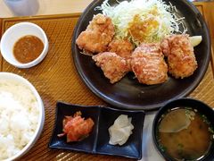 注文はタブレット、各席に電源完備、グループの から好しメニューも注文できる店に改善されてました。から揚げ定食で満腹です。