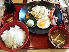 千葉県の、西白井駅から近郊にあるジョイフル。モーニングメニューを食べて来ました。目玉焼き、ベーコン、ウインナー、サバの塩焼き、トマト、キャベツ、大根おろし等々、これで低価格ですよ。