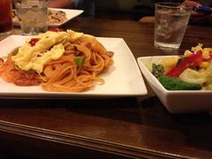 下館駅北口、駅前交番脇の道を北へ徒歩約7分下館税務署手前のところで、長年店を構えているカフェ《ミルクボックス》さんになります。定休日は、日曜日のランチだけなので、いつも安心して訪問できます。ランチ時は、店入口の黒板に4〜6種類のセットメニューが出揃います。ほとんど毎日違ったメニューばかりですから健康面でも有り難いです。個人的に好んで注文する【パスタセット¥750円】は、ボリューミーでサラダ、ドリンク付!味付けが抜群な絶品です!
