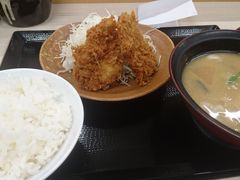 夜中に車で移動中にかつやの看板を発見。「最近、揚げ物も食べてないな」と入店しました。頼んだのは豚汁定食。大きな豚汁とヒレカツ二枚のセットでした。カツなのに、もたれることもなく美味しく食べられました。