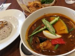 この店舗は新しくはありませんが、昔の洋食屋さんのような雰囲気があります。35年目のカレーフェアを開催中だったので、10種の国産野菜とポークのスープカレーをいただきました。しっかりした辛さとコクがあっておいしかったです。