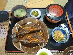 地元向け定食メニュー以外に、甘えび丼、おまかせ丼などが用意されている。