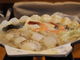 貝の上にホタテやエビなどを味噌と一緒に煮込んでいました