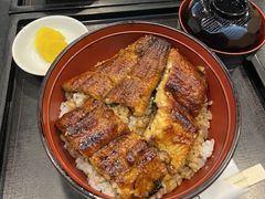 香りが駅まで漂う駅前の鰻屋さん。甘めのタレで外はカリカリ中は柔らかい肉厚の鰻。都会で食べるより3割ほど安く、ランチは1400円から。めちゃ美味しかった!昼前でも何組か並んでて、持ち帰りの予約電話が鳴りまくってました。