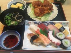 Aセット揚げ物、お寿司、お吸い物で税込842円。これに茶碗蒸しが付いたBセット1058円。揚げ物、お寿司はさまざまな選択肢がありバリエーション豊富。私はにぎりとカッパ巻き、鳥唐揚げ、相方はえびと玉子にぎり、キスの天ぷらをチョイス。お寿司が美味しいことはもちろん、揚げものはサクサクでボリューム満点。大満足です。お得に優雅なランチが楽しめました。駐車スペースもかなりありましたので、高鍋方面に来たときはまた是非伺いたいです。詳細情報をみる