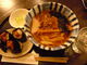 イオン八事店の地下二階にある和食専門店です。店内はテーブル席と小上がりの座敷があって、ちゃぶ台のような丸テーブルのある席へ。店員さんに気付かれないように、靴下も脱いでリラックス。オーダーしたのは天むすきしめんセット\1100。天むす3個とあったかいきしめん。アゲとかまぼこが乗っかっている。シンプルなきしめんだが、あっさりとした出汁が美味しい。すべて飲み干してしまった。海苔が巻かれた天むすは海老天が入っていて、これも実に美味しい。