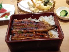 HPで席予約して会食利用しました。和風定食(上)で、うな重・天ぷら・お刺身を一度に堪能しました。うなぎは背開きタレ甘め、です。