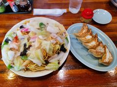 噂通りのかなりのボリューム感の堅焼きそば(揚げ焼きそばのあんかけ)。