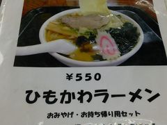 ひもかわラーメン美味しい!! しょうゆベースのスープにワンタンよりも大きく、分厚い麺。食べごたえあります。