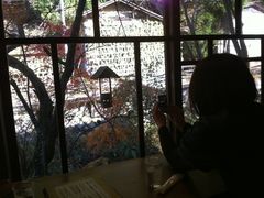 板井原集落の中にあるカフェ。囲炉裏があったり、ちいさなギャラリーがあったり。写真は、鳥のえさかごです。小鳥ファミリーが来てました。
