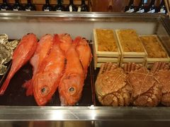 カウンター目の前にはきんき、毛ガニ、ウニが!