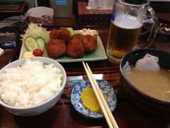 団体さんで混み合っていましたが、ホタテフライやホッケ、初めて食べたつぶの天ぷらなど、とっても美味しく頂きました!また、意外にも紋別ではフグも採れるようでフグの唐揚げも気になりましたが、お腹いっぱいでたどり着けませんでした。