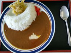 シルバーラインを越えてやっと到着。遊覧船前に時間があったのでお昼を食べました。名物ダムカレーとざるそば、けんちんうどんを頼みました。どれも700円しないくらいで良心的でしたよ。ダムカレーの遊覧船は沢庵です笑