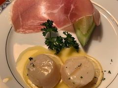 ホタテのポアレ 生ハムメロン
