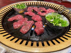 タン、ハラミ、ロース、ビビンバなどの定番メニューを頼みました。食べ放題で慣れているので、こちらのお肉の質の良さがわかりやすく、ロースは、柔らかく口の中ですーっとなくなっていく感覚でした。食後はもたれる事なく、満足感で一杯でした。