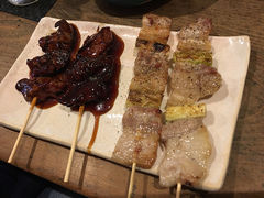 いつも満員でなかなか入れない人気の焼き鳥店。レバーに砂肝、ジューシーさを保つ焼きの技術は秀逸。この日はファイターズ優勝が決まり振る舞い酒も。