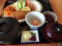 お腹すいたのでお店を探すことに。さすがにどこもいっぱい。2階にあるお店に決定。少し待ちましたが入れました。高野山と言えば胡麻豆腐と思い注文しました。自分が思ってた味とは違いました。甘くなかったです。それと柿の葉寿司となぜかとんかつ定食を注文 美味しく頂きました。店内に入るとゆっくりできました。