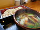 冷たい細めのお蕎麦を、出汁の利いた熱いつけ汁につけていただきます。