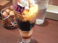 この秋のスイーツ:紫芋とかぼちゃのパフェを注文しました。