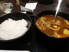 既に「ローストチキンスープカレー」は他店で 2回頂きましたので本日は初めての「海の幸スープカレー」を 2辛、ルー追加でモバイルオーダーしました。