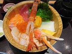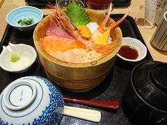 海鮮のおひつごはんが食べられます。普通に醤油で一杯、お茶漬けで一杯などの食べ方ができます。海鮮もとても美味しいです。