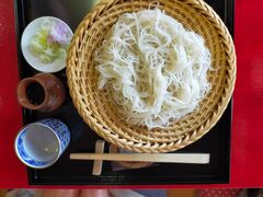 ゴールデンウィークを利用した足利そば巡りの白眉となるのが「蕎遊庵」です。二日続けて通いましたが、初日はもり(600円)とさらしな生一本(850円)です。さらしなは「幻のそば」というふれこみのとおり、出汁のきいた冷や汁にあう生糸のようなそばで、もりはそばの実のあまい味がする絶品です。二日目ももりを頼み、十割そば(750円)も追加です。十割そばはつなぎを一切使わないにもかかわらずしっとりしてそばの香りが口に含むたびに漂う逸品です。いずれも薬味はネギとおろしで、そば湯がタイミングよく運ばれてきます。開店(午前11時)まえには常に行列ができており、目当てのファンが多いのも特徴でしょう。座敷とテーブル席がありますが、織姫神社の境内にあり店が山の中腹に位置するため、ほぼどこからも足利市内を見渡すことができます。こうした展望のよさも「蕎遊庵」のおおきな魅力の一つと言えるでしょう。あまりに長い行列が苦であれば、11時前には到着したほうがよさそうです。数ある足利のそば屋のなかでも、観光地化されずにそばの味そのもので勝負している名店です。