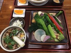 営業時間前のこと、店先に飾ってあるパネルと写真を撮ろうとしていたら、お店の方が偶然店先に出てきて「写真お撮りしましょうか?」と言ってくれました。感じがよく、ここでお昼を食べようということに。野菜三倍肉汁せいろは盛りだくさんの野菜が乗っていて満足感がありましたし、おかみさんも人柄の良さがにじみ出ており、また飯能に行ったら必ずここで食べたいと思いました。ちなみに営業が始まってすぐ入ったのですが、30分もすると満席になっていました。