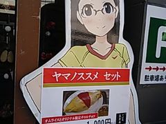 お蕎麦屋さんなのに 何故かヤマノススメのパネルと一緒に飾ってあるのはオムライス